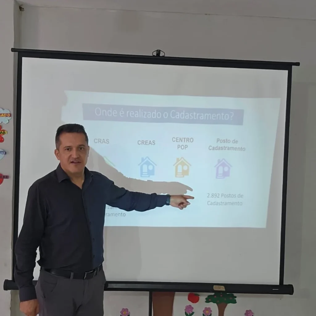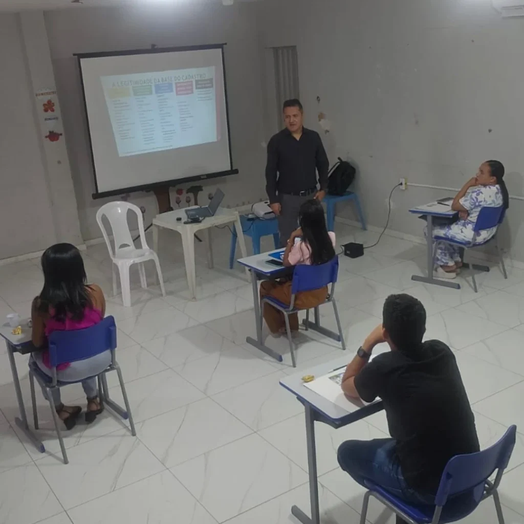 A capacitação contou com a participação do palestrante Roberto Oliveira, que conduziu as atividades voltadas ao fortalecimento dos conhecimentos técnicos, à atualização das informações relacionadas aos programas sociais e ao aprimoramento das práticas de atendimento às famílias beneficiárias.
